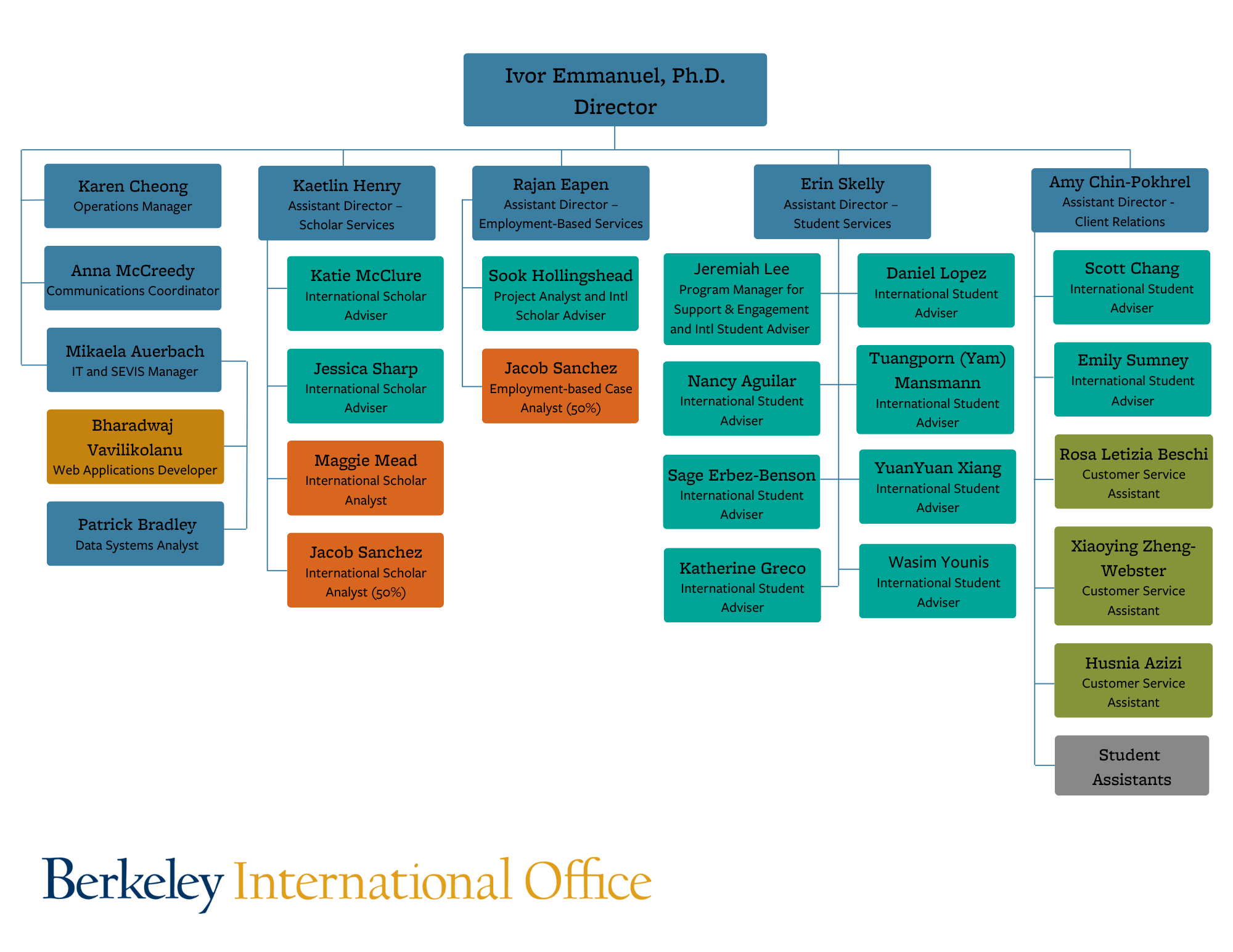 Click here or below to access the Organizational Chart for Berkeley International Office.