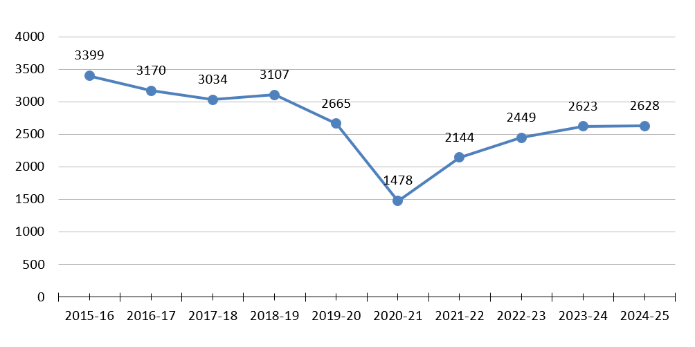 The Annual Report compares data from 2003 to the present and includes information on immigration status, gender, field of study, primary objective (teaching, research, etc.) and country of citizenship.